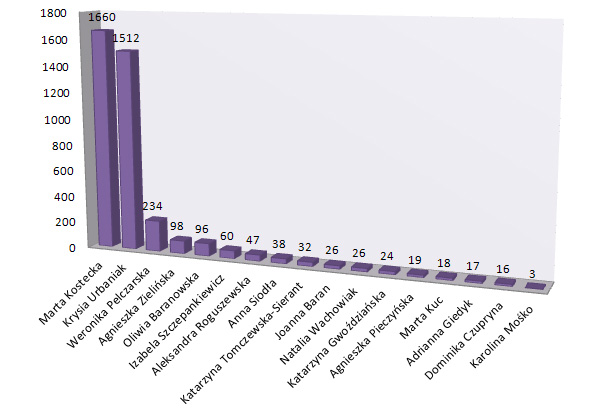 Poniżej przedstawiamy wykres jak rozłożyły się głosy wśród kandydatek: