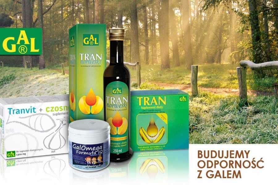 Budując odporność organizmu w okresie jesiennym, warto wziąć pod uwagę przyjmowanie tranów, a wśród nich: TRANU NORWESKIEGO W PŁYNIE GAL O AROMACIE CYTRYNOWYM GAL (przygotowanego na bazie wysokiej jakości oleju z wątroby dorsza, który jest poławiany w czystych wodach Norwegii) oraz TRANU W KAPSUŁKACH GAL. Trany to propozycja zarówno dla osób dorosłych, jak i młodzieży oraz dzieci. Zawierają: witaminę A - pomagającą w prawidłowym funkcjonowaniu układu odpornościowego; witaminę D – pomagającą w utrzymaniu zdrowych kości i zębów oraz regulującą gospodarkę wapniowo-fosforową. Trany to także źródło Niezbędnych Nienasyconych Kwasów Tłuszczowych Omega-3 (EPA i DHA). Kwas eikozapentaenowy (EPA) i kwas dokozaheksaenowy (DHA) przyczyniają się do prawidłowego funkcjonowania serca, utrzymanie prawidłowego ciśnienia krwi oraz poziomu trójglicerydów.
