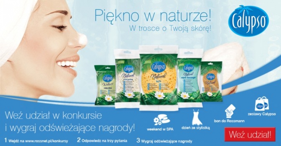 Rewitalizując swoją skórę na wiosnę z produktami Calypso masz szansę na zdobycie odświeżających nagród! Wystarczy, że kupisz produkt marki Calypso w drogerii Rossmann i zachowasz dowód zakupu, a następnie zalogujesz się na stronie www.rossnet.pl/konkursy , odpowiesz na 3 proste pytania i będziesz cieszyć się wygraną, która pozwoli Ci odkryć Twoje naturalne piękno!