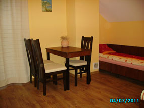 Nowo wybudowany dom gościnny mieści się w cichej i spokojnej okolicy. Oferujemy pokoje dwu- i trzyosobowe. Pokoje są nowocześnie umeblowane z płaskimi telewizorami. W każdym pokoju dostępna jest łazienka z pełnym węzłem sanitarnym. Każdy pokój posiada własny balkon. Do dyspozycji gości są parawany i leżaki plażowe. Istnieje możliwość skorzystania z grilla na terenie działki. Parking dla zmotoryzowanych znajduje się na posesji, ale również i przed. Oferujemy też wypożyczenie rowerów.