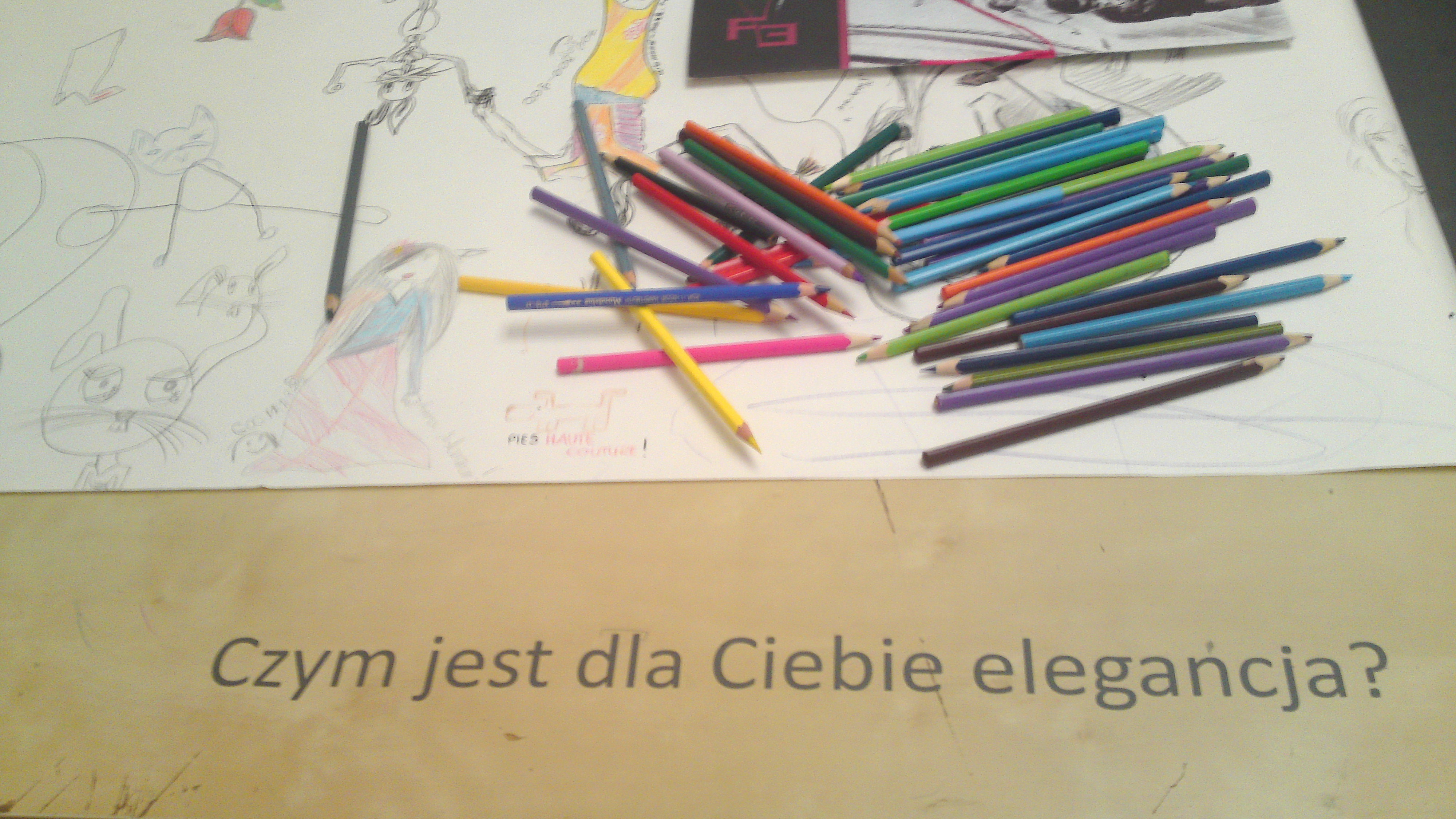A jeśli zechcecie wybrać się na wystawę z maluchem, znajdzie się i kącik dla niego, kącik wyposażony w kredki oraz kartkę, który z racji okoliczności powinien zainspirować do zostania przyszłym kreatorem mody :-)
