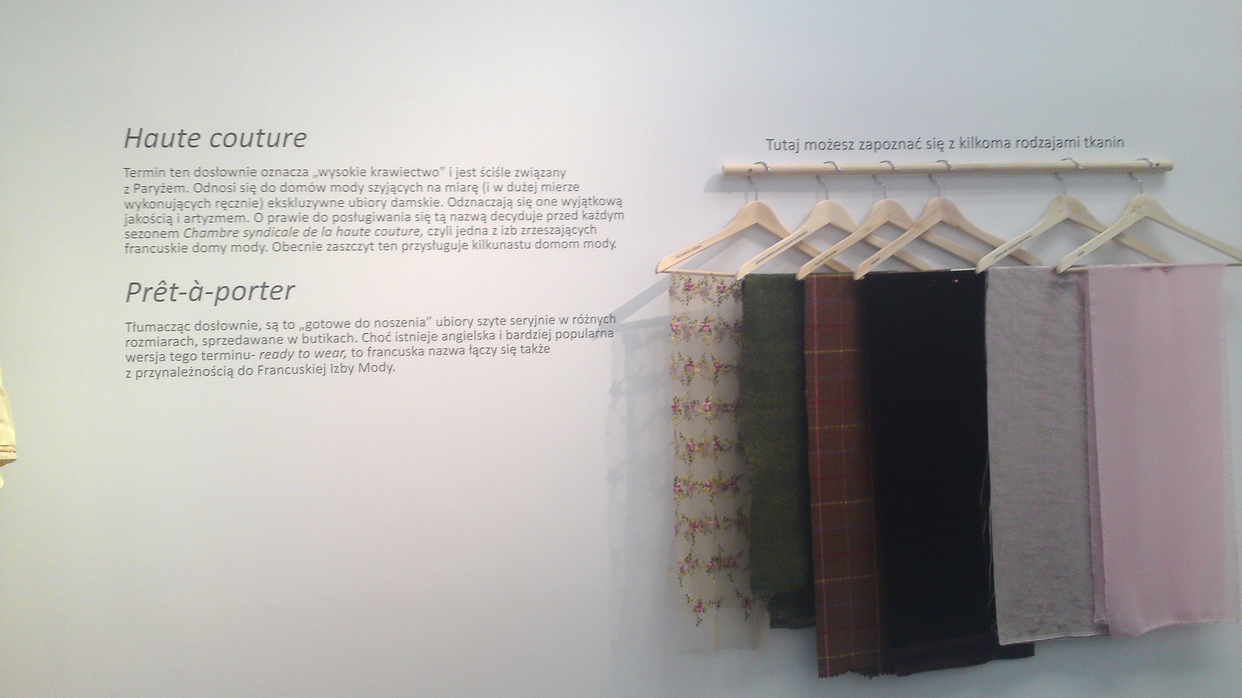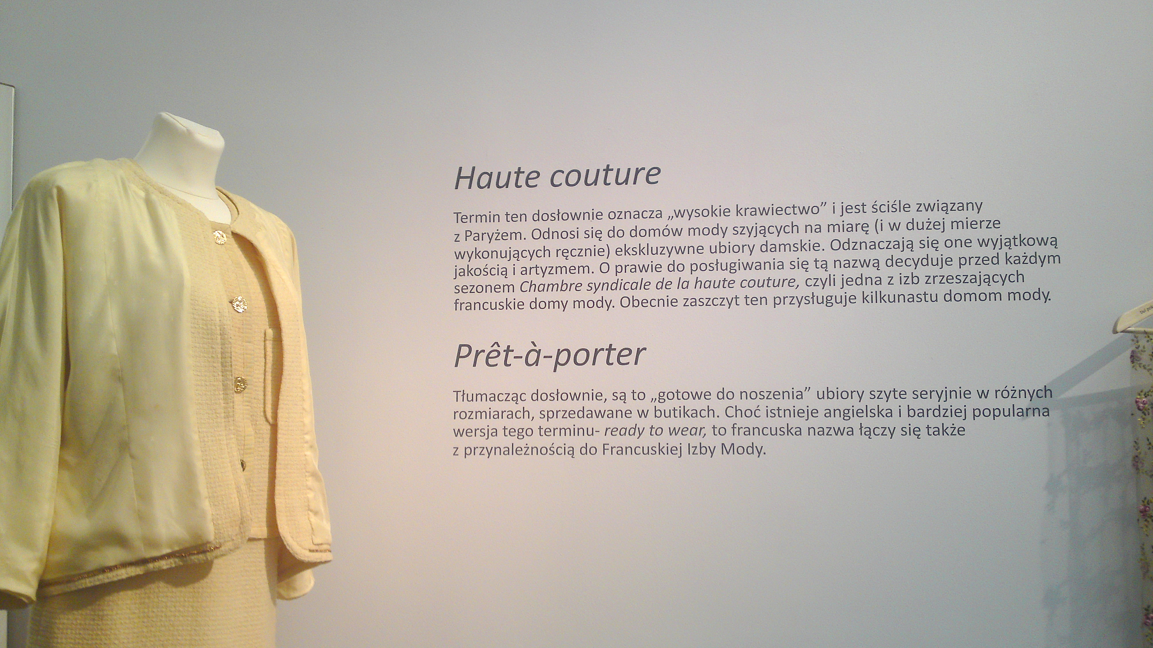 Twórcy wystawy zadbali o to, żeby zwiedzający mogli obejrzeć kreacje z każdej strony, wszystkie są opisane bardzo ciekawie. Możemy również zapoznać się z zaprezentowanymi w sali informacjami o przemianach i inspiracjach w modzie, dowiedzieć się co nieco o ewolucji gorsetu - czyli o tym jak udało się uwolnić kobiety od tych "sztywnych zasad". Wystawa pokazuje kwestie mody nie tylko w kontekście sztuki, ale również z perspektywy technologicznej, ekonomicznej oraz społecznej. Mimo, że ekspozycja prezentuje tylko wybrane trendy (nie sposób przecież pomieścić tak obszernej historii w dwóch salach) to ciekawie przybliża te najważniejsze, dzieląc wystawę na działy: Powroty mody, Od gorsetu do... gorsetu, Estetyka Art Deco, Francuskie krawiectwo Haute couture, Mini - rewolucja i Spojrzenie w przeszłość.